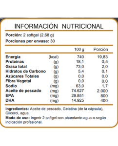 Este producto es un suplemento alimenticio, sólo se debe consumir con fines de suplementar la dieta, no reemplaza una alimentación balanceada. No exponer a temperaturas sobre los 20ºC. Su consumo no es recomendado pormenores de 8 años, embarazadas, nodrizas, salvo indicación profesional competente. Este producto no pretende curar o diagnosticar ninguna enfermedad opatología ni sus síntomas. No es medicamento ni producto farmacéutico. Elaborado en Chile en líneas que también procesan gluten, nueces, maní, almendras, lecitina de soya y derivados de pescado. No apto para veganos.